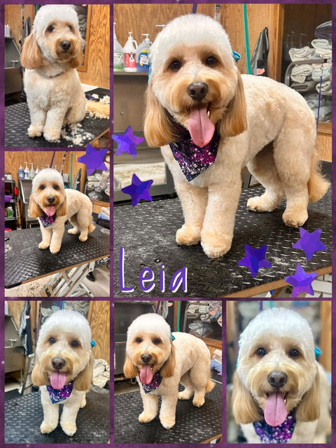 Includes relaxing massage bath, nail trim, ear cleaning, brush, blow dry, blow out, haircut, and bandana. (Prices May Vary)